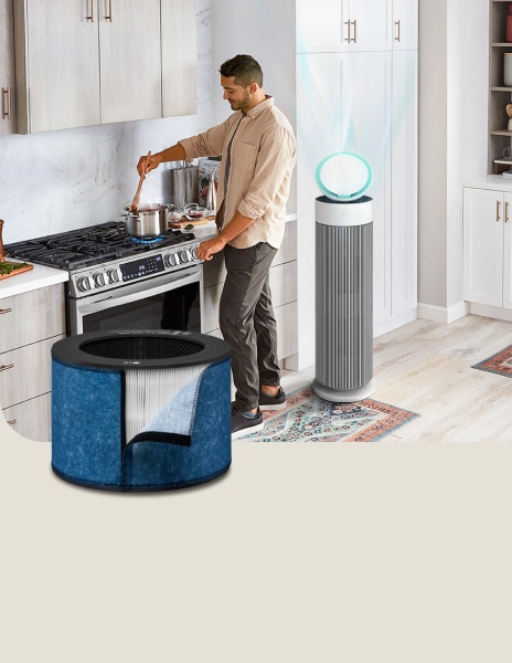 LG PuriCare™ purifies the air 360° around you, in every direction, no matter where you place it.
