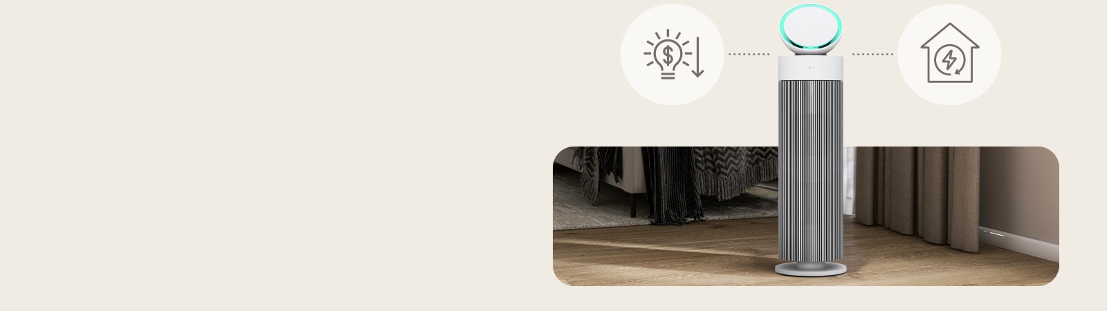 *It can be turned on or off and the color can be controlled through the ThinQ app. (Initial default setting is 'color change according to overall air quality'). The lighting color option is limited to the colors provided in the ThinQ app. Brightness can be adjusted in 20% increments.